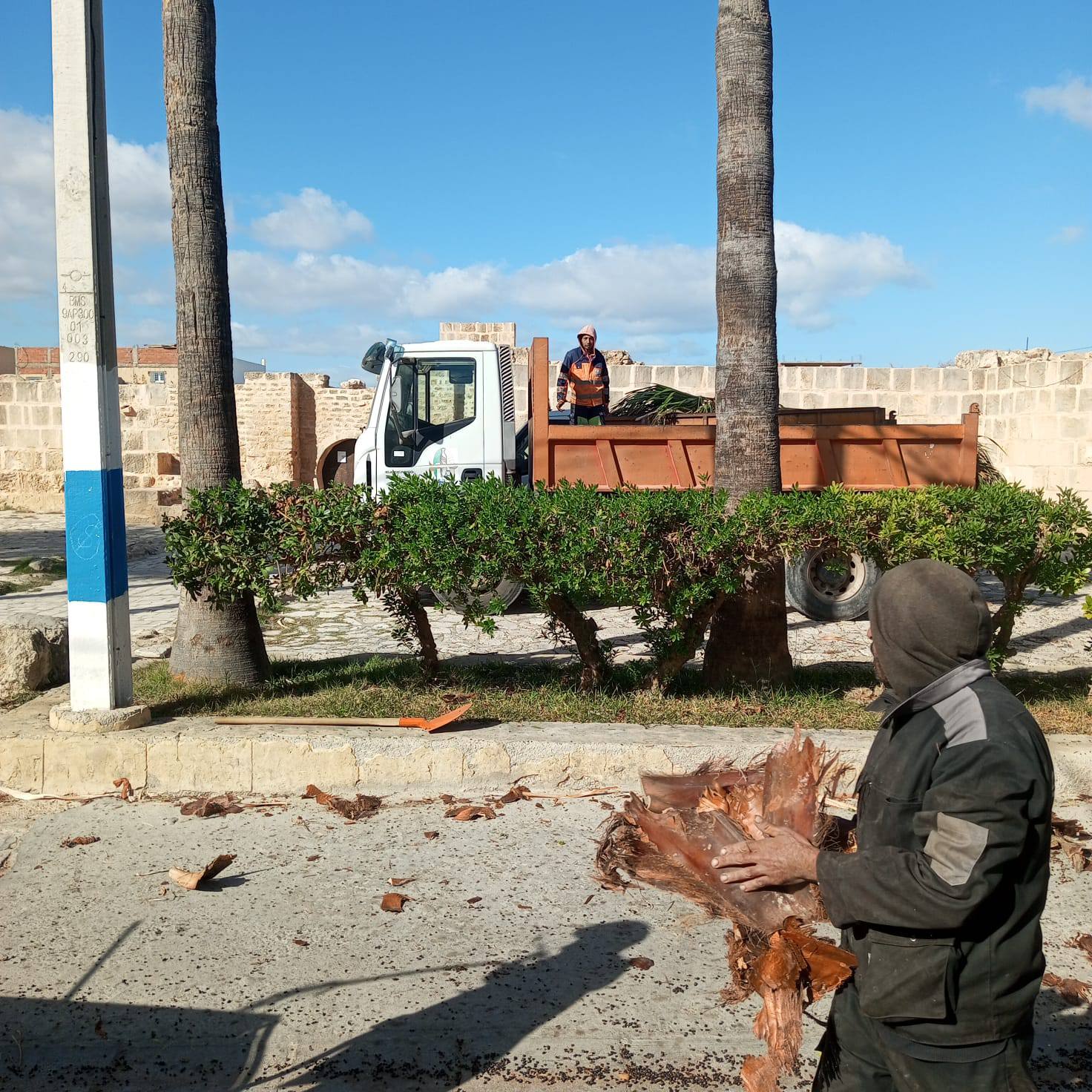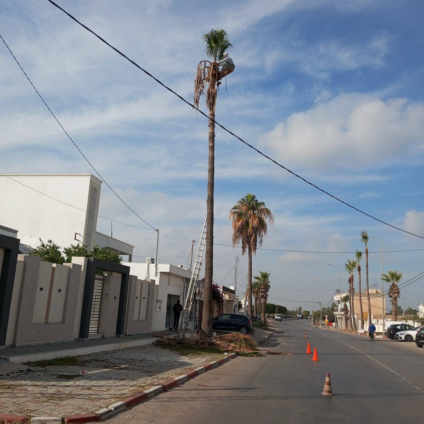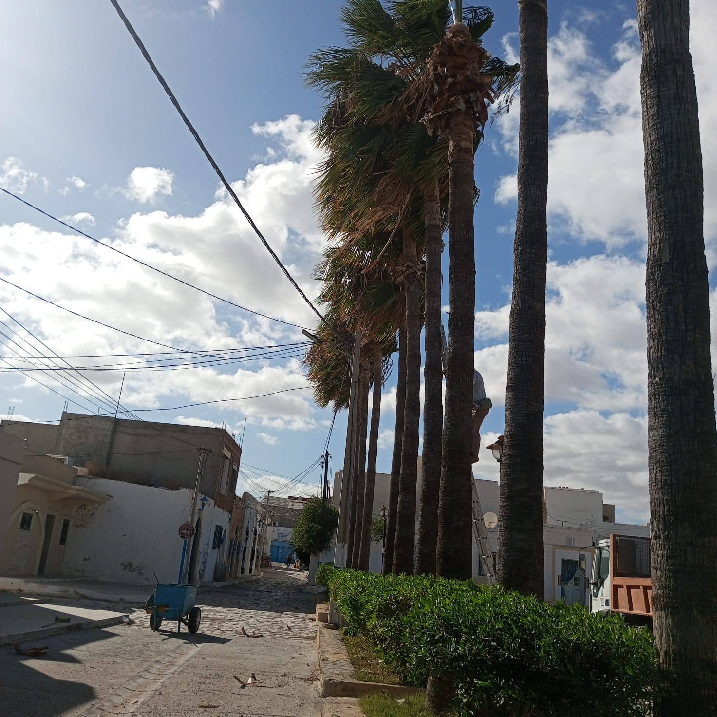 تتواصل مجهودات البلدية لتعزيز نظافة المحيط وضمان بيئة سليمة و أنظف للمواطنين حيث تم الانتهاء من أشغال تشذيب أشجار النخيل وتقليم أشجار الفيكيس بكامل المنطقة البلدية